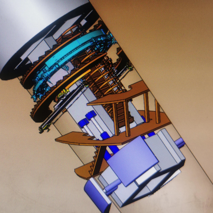 大家看到那个黄色的、像楼梯一样的部件了吗?那就是林祉祎口中的倾斜的“椅子”——准确来说,它是一个向下倾斜的操作平台。