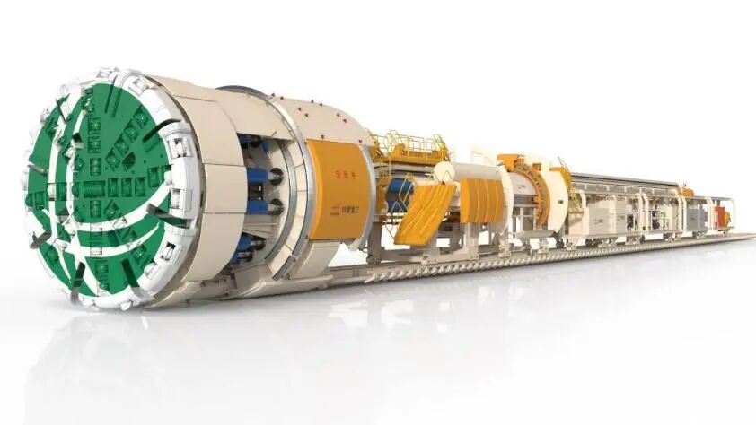 TBM就像一列能钻山破岩的“钢铁火车”,车头的刀盘旋转切削岩石,车身负责运出碎石,还能同步完成隧道支护。与传统施工相比,TBM有三个突出优势: