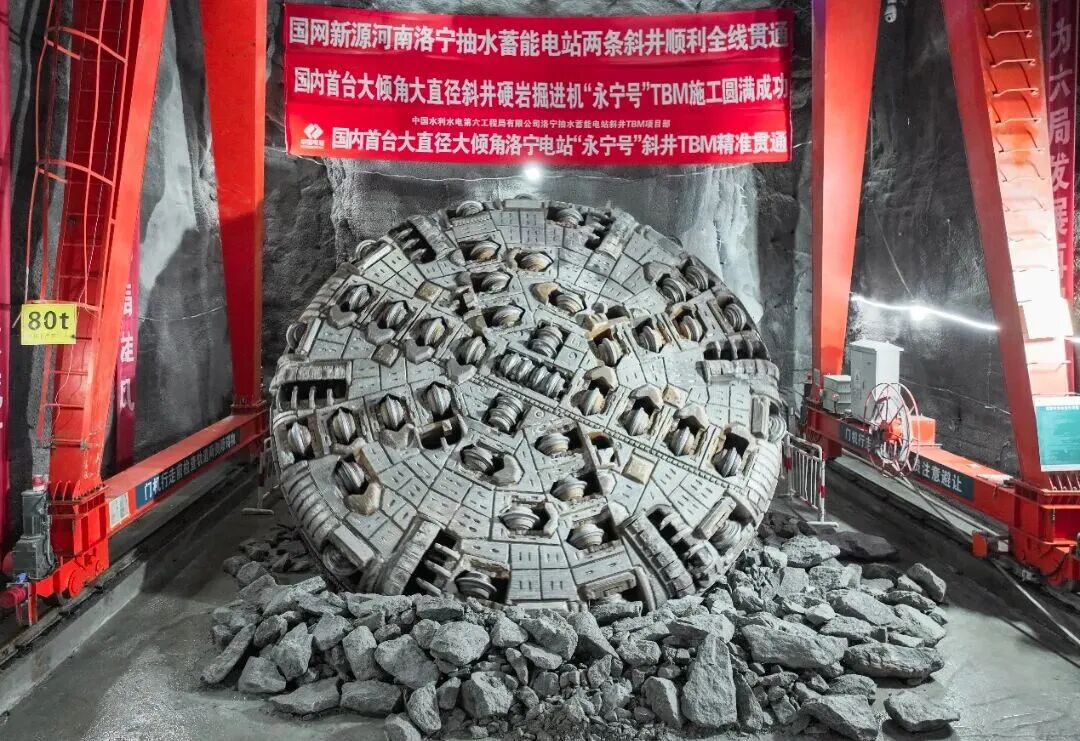 2024年9月,国内首台大倾角、大直径斜井TBM“永宁号”精准贯通国网新源河南洛宁抽水蓄能电站的关键性引水斜井。这条斜井长873米、倾角为38.742度,刷新了我国在抽水蓄能电站建设领域机械化施工的纪录,真正实现了大倾角斜井TBM施工。