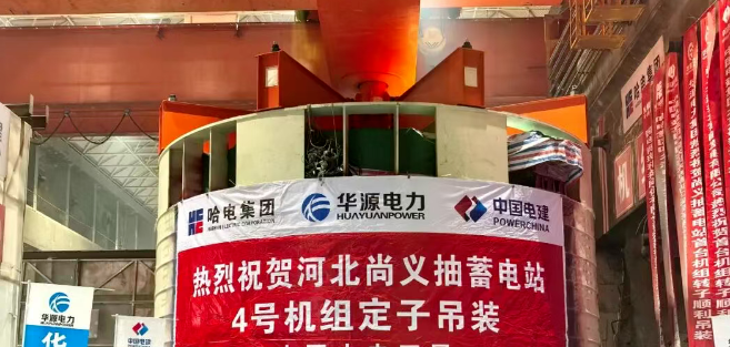 11月26日,河北尚义抽水蓄能电站4号机组定子精准吊入机坑就位,标志着电站4台机组定子全部吊装完成。