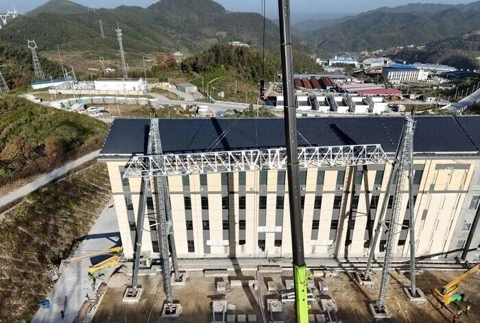 2025年11月25日,湖南平江抽蓄电站地面开关站出线平台500千伏出线构架安装完成。